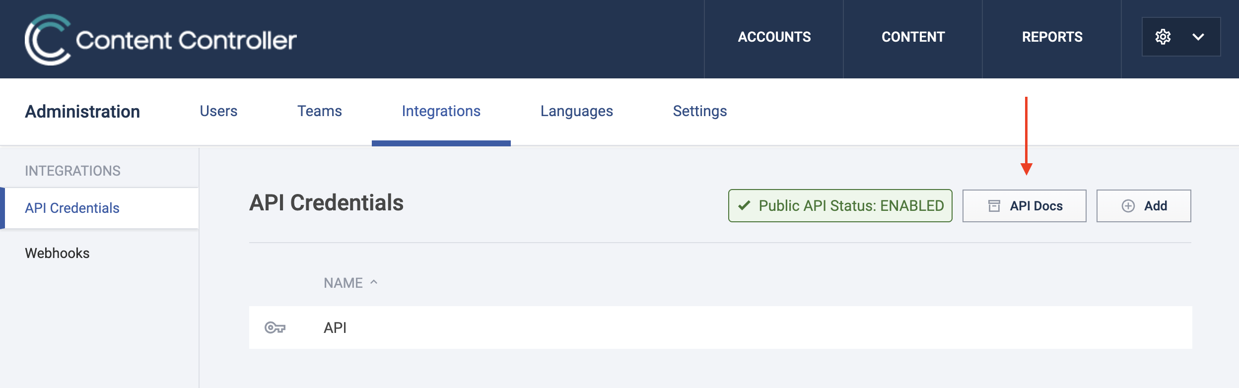 * Click the **API Docs** button on the right to be redirected to a documentation page.